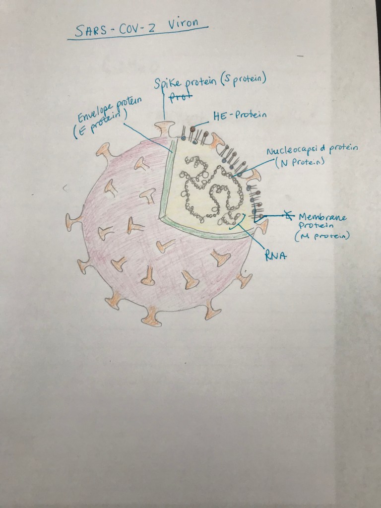 The Coronavirus virions responsible for the current pandemic are named for the outer layer of spikes on their envelope resembling the corona of the sun. The novelty virus SARS-COV-2 is a highly successful virus that is transferred through human to human contact. The virus is enveloped and contains a massive positive-sense single-stranded RNA genome. The alternative genomes consist of negative-sense single stranded RNA, double-stranded RNA, double-stranded DNA, and single-stranded DNA. It has a nearly 30 kb genome. The genome is organized from a 5’ tail to a 3’ tail. It has several proteins in its spikes, envelope, membrane, and nucleocapsid. Some of the SARS-COV-2 proteins are phosphorylated. These proteins are S-spike, HE-hemagglutinin, Replicase, M-membrane, E-envelope, and the N-nucleocapsid. Each of these sections contain a protein that has a specific function aiding in the attachment, replication, protection and overall survival of the virus. (Fehr and Perlman 2015)